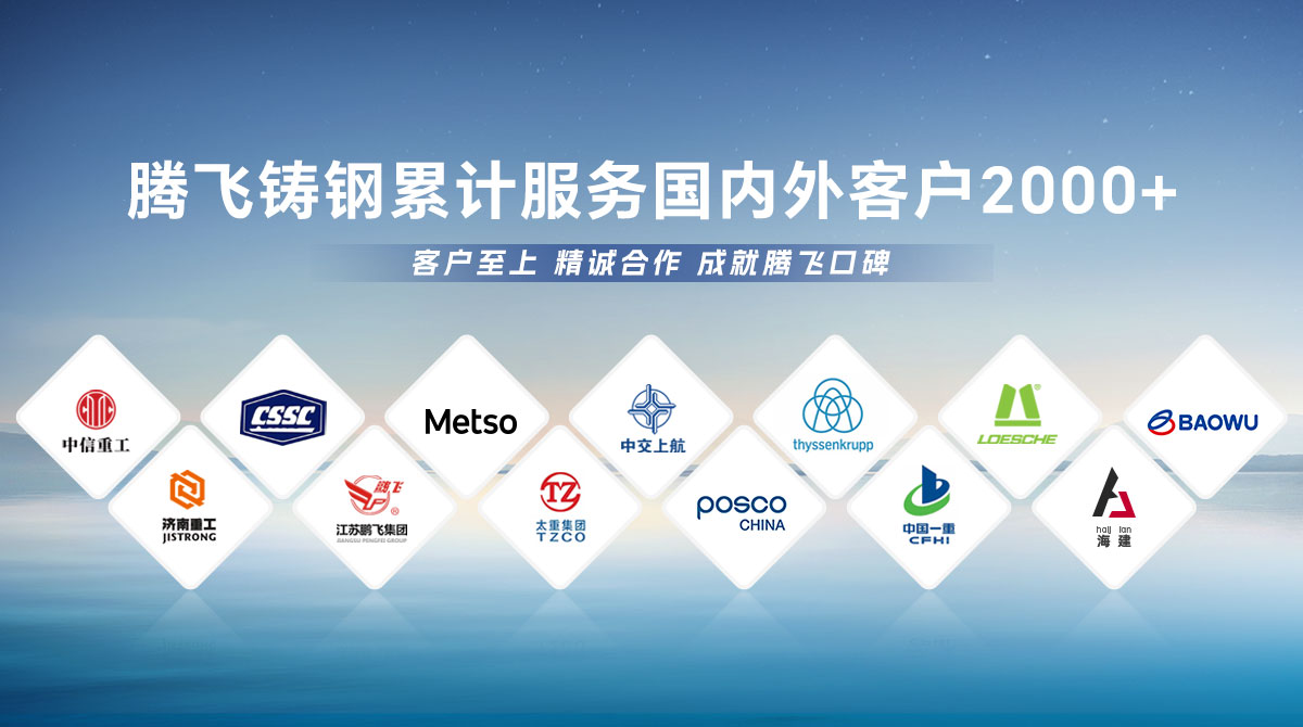 騰飛鑄鋼成立于2006年,位于全國鑄造基地河南省新鄉(xiāng)市,擁有員工300余人,是一家從事150噸以下碳鋼、低合金鋼、不銹鋼鑄鋼件研發(fā)、制造、服務(wù)為一體的國家高新技術(shù)企業(yè)。  公司通過了ISO9001國際質(zhì)量管理體系認(rèn)證,擁有2項(xiàng)發(fā)明專 利,2項(xiàng)河南省科技成果、25項(xiàng)實(shí)用新型技術(shù),通過了“環(huán)??冃гu級B級企業(yè)”驗(yàn)收,先后榮獲“河南省鑄造行業(yè)綠色發(fā)展企業(yè)”、 “河南省科技型中小企業(yè)”、“河南省專精特新中小企業(yè)”等榮譽(yù)稱號?! 」緭碛?臺25噸電爐,4臺大型天燃?xì)鉄崽幚頎t、10米回旋自動拋丸機(jī)一臺, φ8m數(shù)控立車、φ10m數(shù)控滾齒機(jī)等各類高精裝備100余臺套,年產(chǎn)能3萬余噸,能為客戶提供從產(chǎn)品設(shè)計(jì)、木模加工、大型鑄造、大型加工一站式服務(wù),產(chǎn)品廣泛應(yīng)用于建材、冶金、鍛壓、冶金、水工、路橋、化工等多個重型行業(yè)?! ¢L期服務(wù)于中信重工、中船重工、美卓、上海中交、萊歇、寶武、濟(jì)南重工等全球知名企業(yè),在行業(yè)內(nèi)擁有較高的市場知名度和美譽(yù)度。